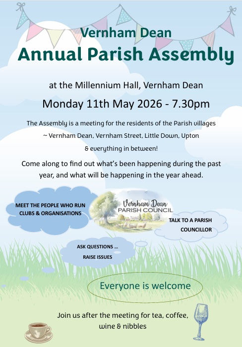 The Annual Parish Assembly is on Monday 11th May, at 7.30 pm in the Millennium Hall, Vernham Dean.